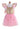 This dress is a dream come true with a skirt of soft pink tulle that gathers beautifully and a top sparkling with gold sequins.